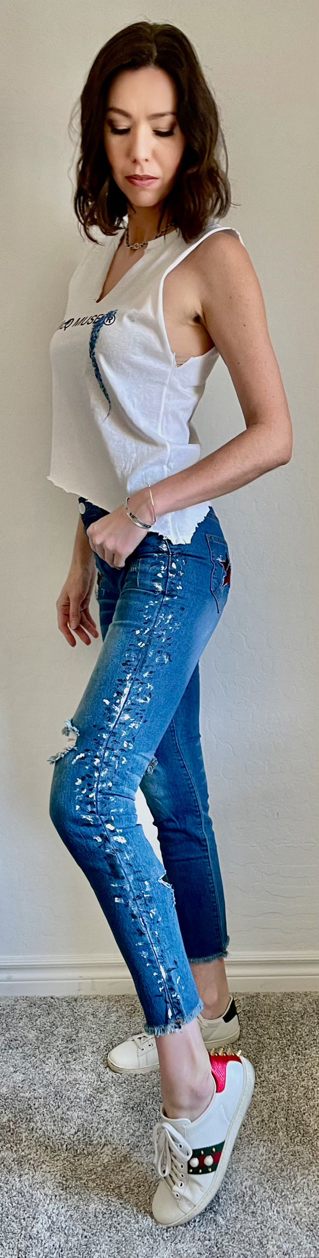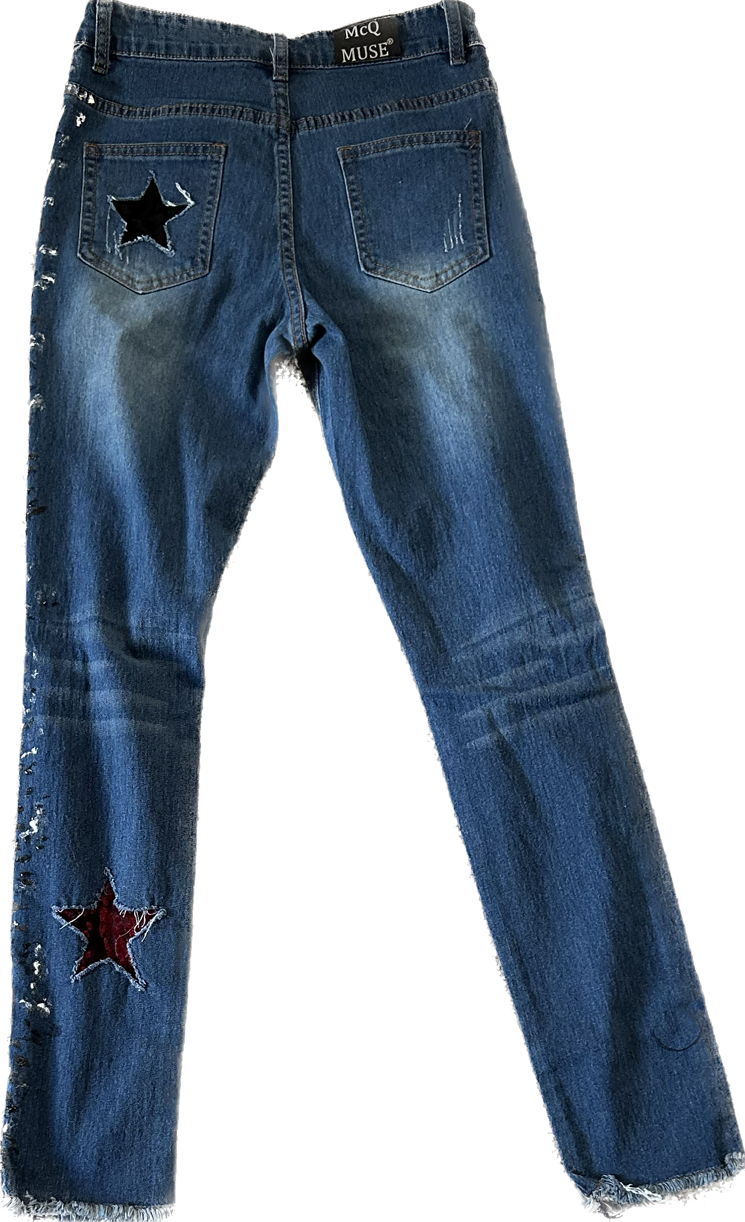 This garment is from the McQ MUSE® RockStar-U designer gallery with hand crafted accent's. Each article of clothing is one of a kind.