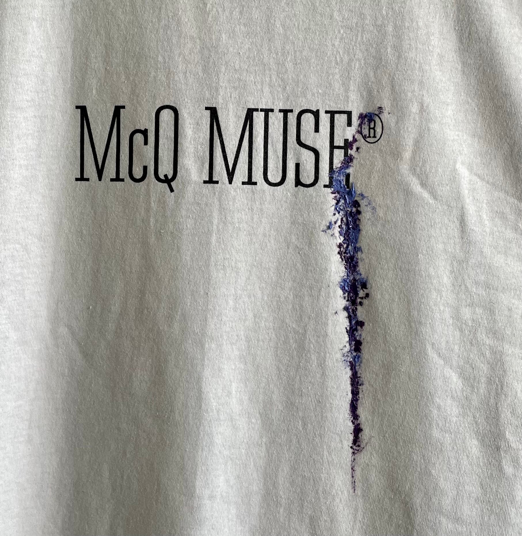 This garment is from the McQ MUSE® Star-33 designer gallery, hand painted, cut, sewn and distressed. Each article of clothing is one of a kind and unique. They should be dry cleaned or hand washed and laid flat to dry.
