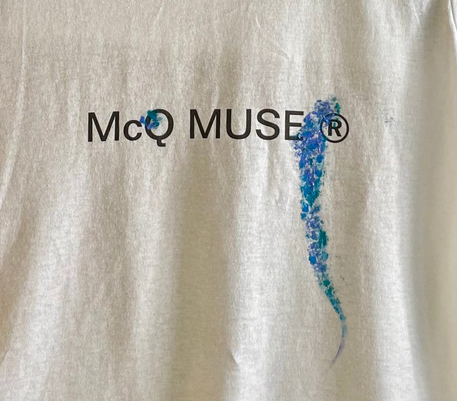 This garment is from the McQ MUSE® Star-33 designer gallery, hand painted, cut, sewn and distressed. Each article of clothing is one of a kind and unique. They should be dry cleaned or hand washed and laid flat to dry.